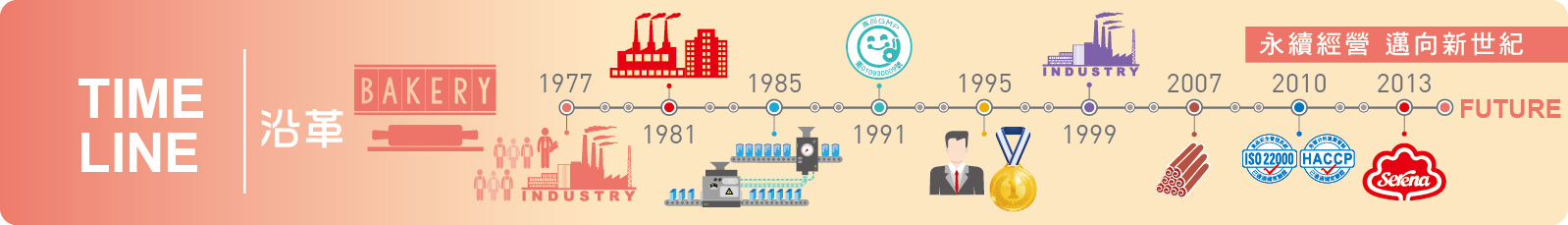 事業拡大と製品ライン増加のため、南投工場の建設に投資し、セリーナシリーズのビスケット製品を生産。また、蛋捲生産ラインを増設し、市場の大量需要に応えるため電熱式手焼き蛋捲機を開発した。