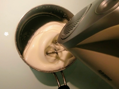 3.蛋黃液加入馬斯卡彭cheese與打發蛋白後拌勻