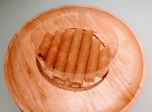 4.咖啡與奶酒混合,蛋捲快速浸過(快速沾一下即可)