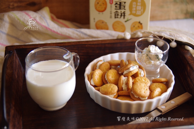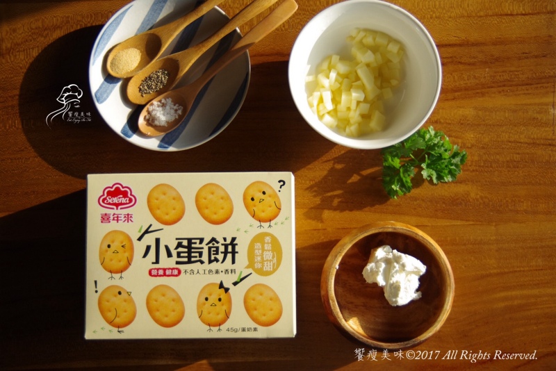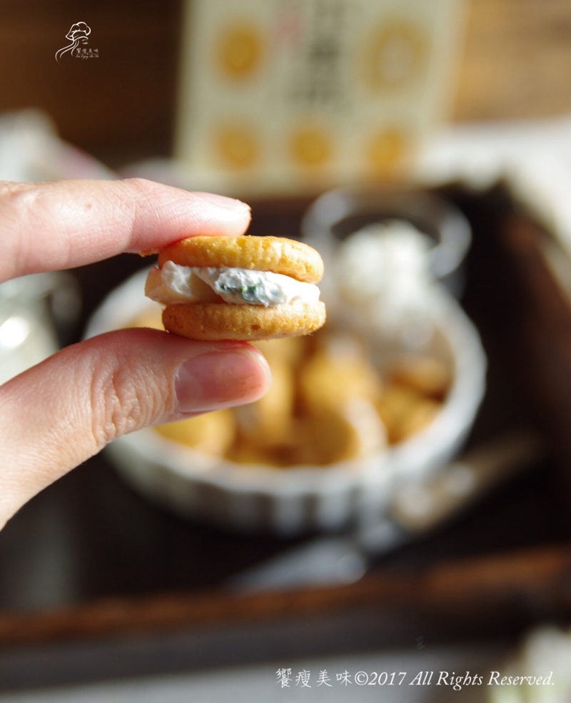 由饗瘦美味粉絲團創意提供的媽媽開學前暖身小點。喜年來小蛋餅口感酥鬆,帶點鹹味,拿一片抹上一些自已調的香料蘋果丁希臘優格,再用另一片蓋上,造型像小漢堡,一次一口,小朋友也可以吃的很優雅,而且這二個味道好協調唷,要停下來不簡單吶~